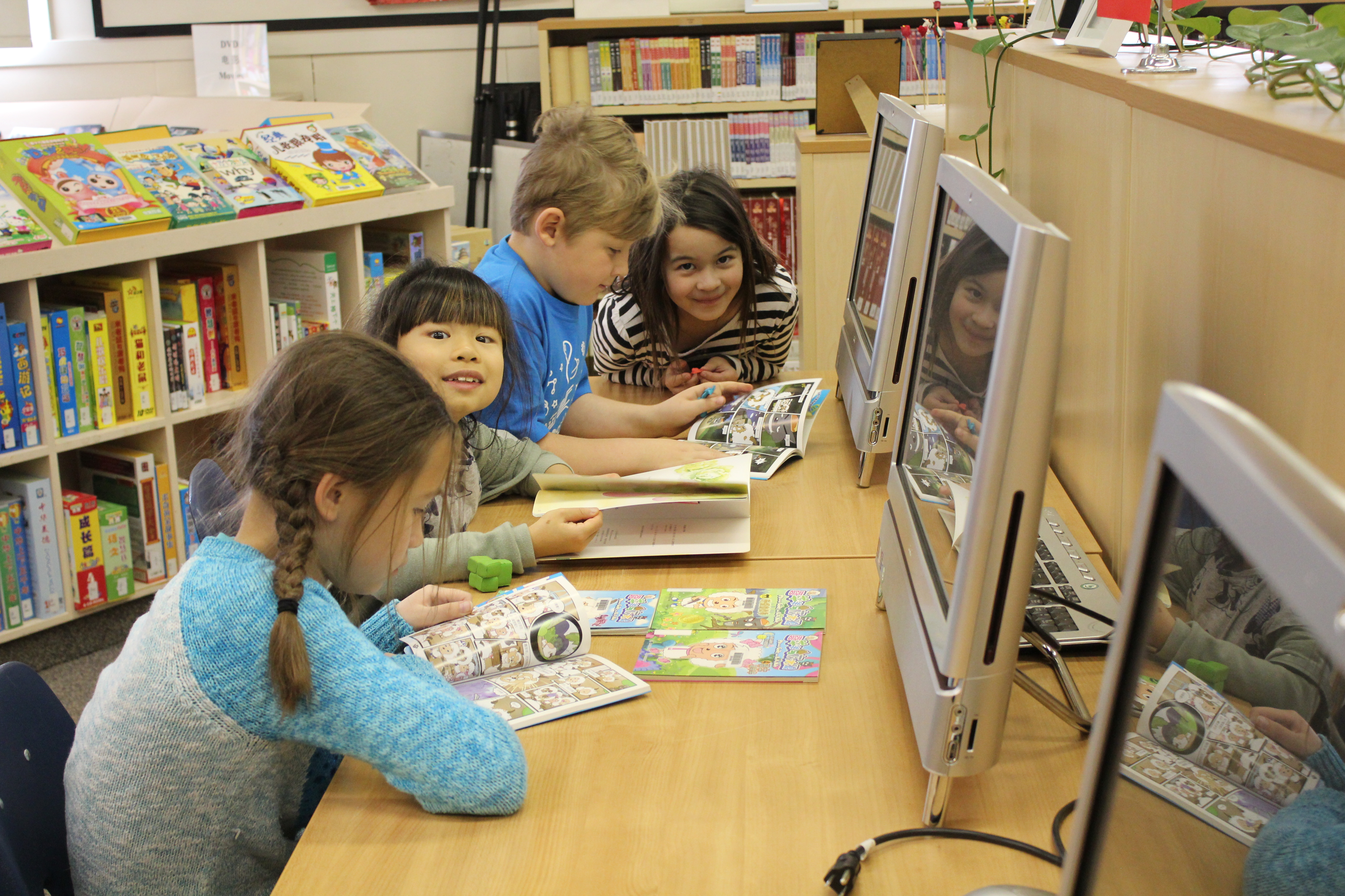 On November 1st, the Confucius Institute in Edmonton library welcomed two groups of 51 students from Dovercourt School. The students are studying in the Chinese Bilingual program. The main purpose of this field trip was to choose Chinese books for students’ class reading.