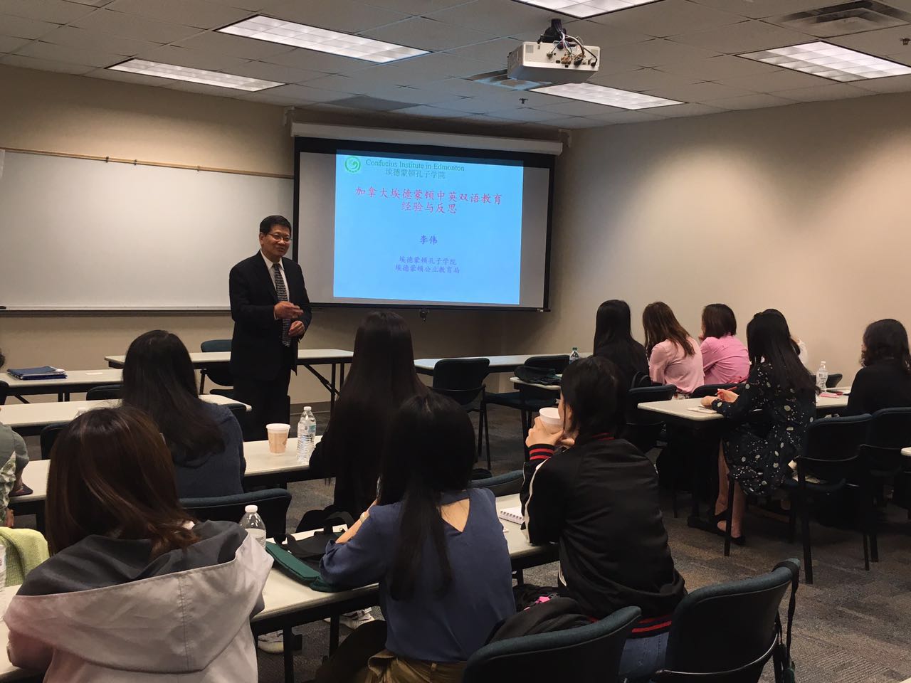 At the workshop, Dr. Li gave a presentation on Edmonton Chinese bilingual program, covering its development, achievements and challenges. All the attendees were impressed by the Chinese bilingual program in Edmonton and the achievements in language proficiency the students have displayed.